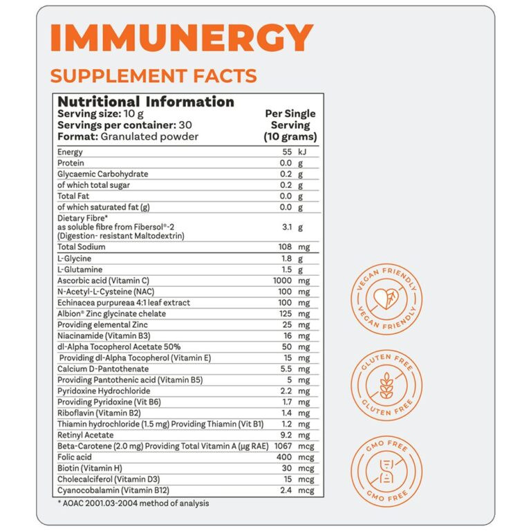 Easy-to-Use: Mixes easily with water or juice, providing a convenient and tasty way to get daily immune and energy support without additional pills or tablets.