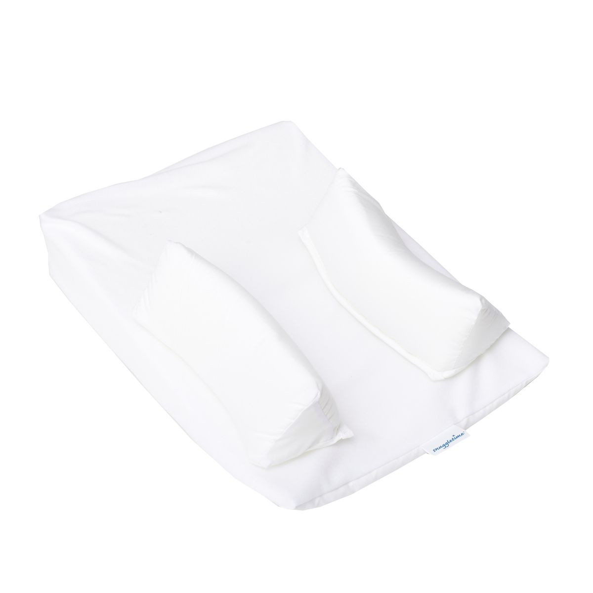 The snuggletime inclined to sleep, sleep positioner for safe sleeping is an elevated wedge body pillow that helps relieve reflux, nasal congestion and earache. Curved side wedges adjust to secure baby in place.