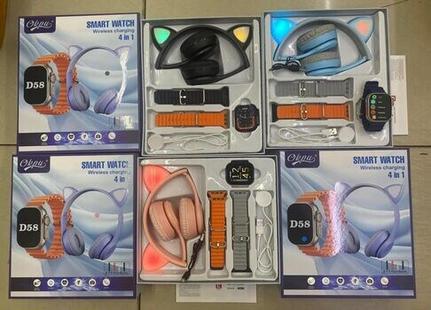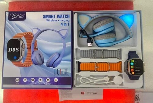 Get this smart watch and headset combo. The smartwatch integrates a touch-enabled display with comprehensive health and communication tools. It tracks activity and sleep, delivers notifications, enables calls, manages schedules, captures photos, monitors heart rate, plays music, and charges wirelessly.