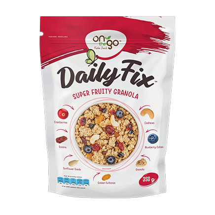 RTE Snacks Granola Daily Fix 350g is a wholesome, ready-to-eat breakfast and snack option, carefully crafted to provide a perfect balance of taste and nutrition. Packed with energy-dense rolled oats, crunchy nuts, seeds, and dried fruits, this granola is a versatile choice for health-conscious individuals and families alike. It is lightly sweetened with natural honey, offering a guilt-free indulgence for any time of the day.