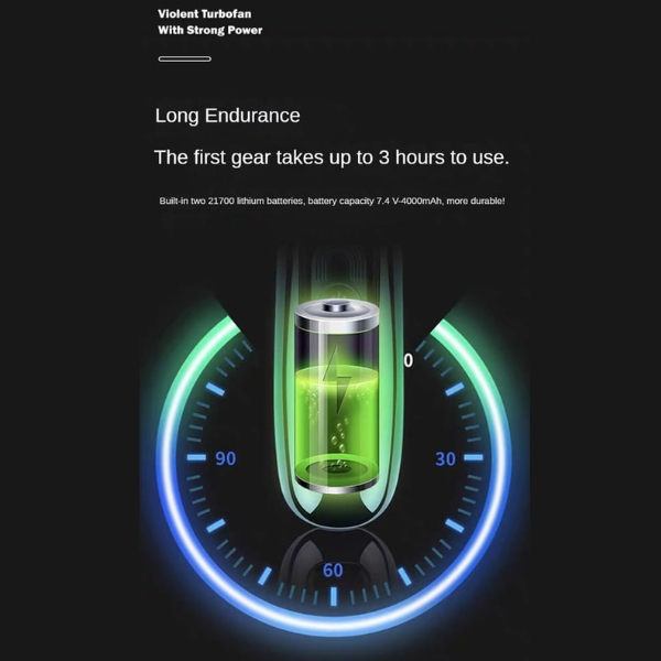 Energy-Efficient: Equipped with a high-efficiency motor and a rechargeable battery, the Mini Jet Turbo consumes minimal power while delivering powerful air-blowing performance.