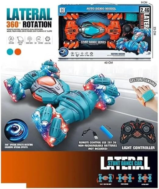 Experience high-tech fun with the Sensor Stunt RC Car Toy! This innovative remote-control car features 360° rotating wheels, multi-color lights, and dual control modes—traditional remote control and an interactive hand-watch sensor. Perfect for kids and adults, this stunt car is designed for thrilling spins, flips, and unique movements, providing endless entertainment.